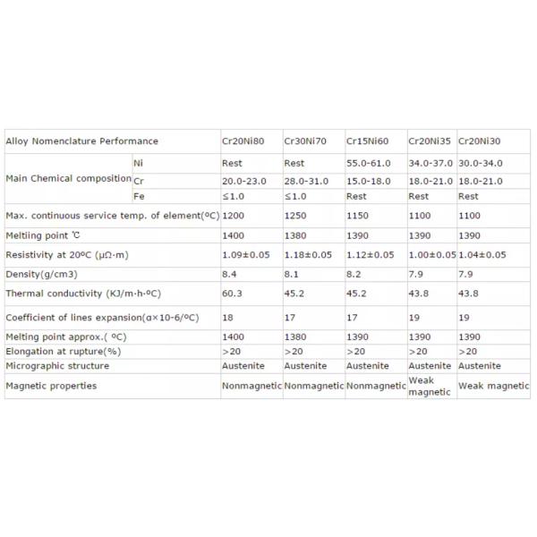 NiCr Type:Cr20Ni80,Cr15Ni60, Cr20Ni35, Cr20Ni30, Cr25Ni20 etc.Series electric flat belt, electric fire wire.